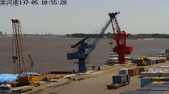 2、黑河港港口主要裝卸設備:黑河港現有港口機械門(mén)座起重機、浮式起重機、履帶起重機、輪胎起重機、裝載機、正面吊、叉車(chē)、130噸汽車(chē)起重機等30余臺套,具備晝夜裝卸作業(yè)能力。